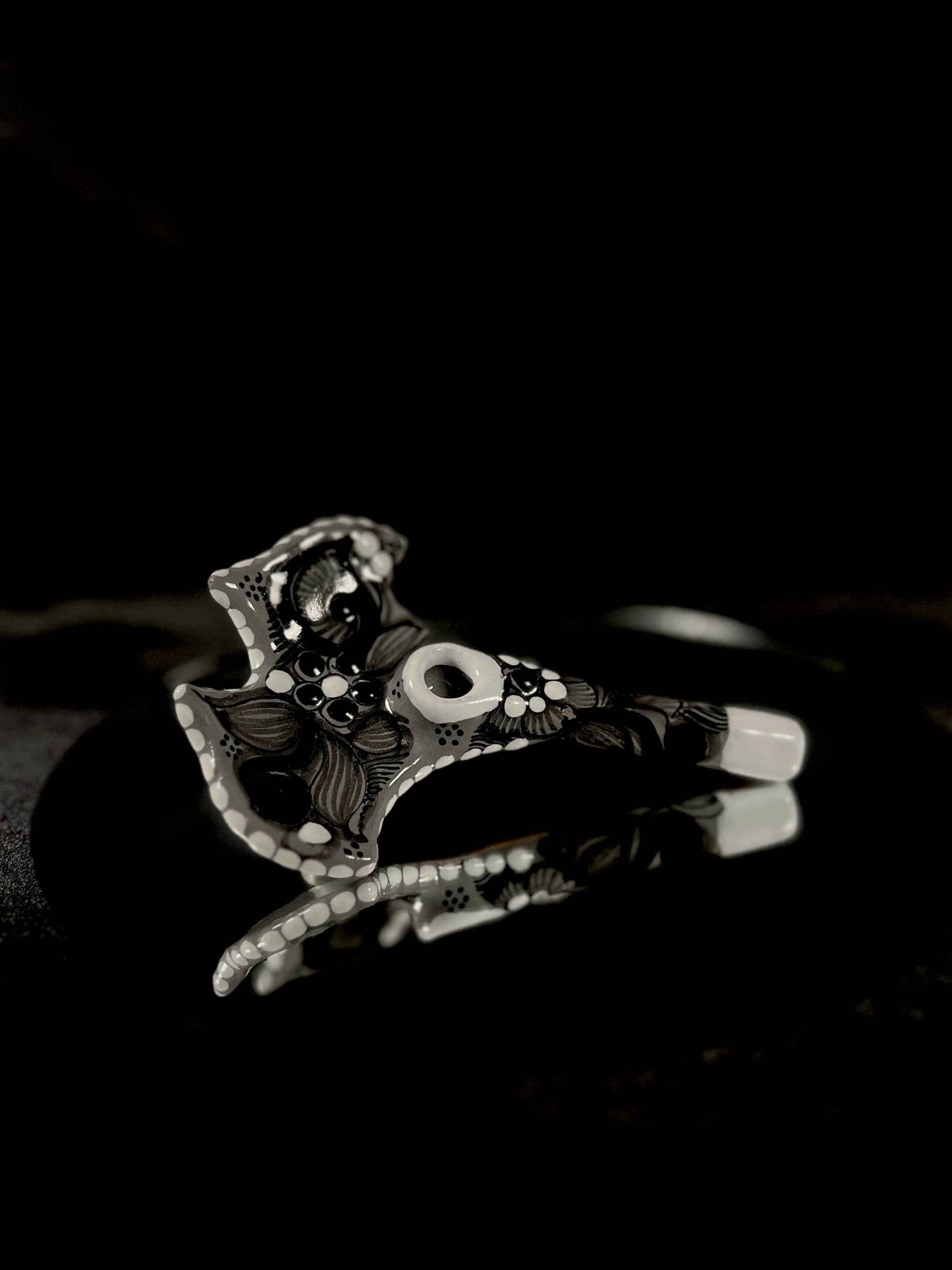 Talavera Hand Pipe: Handcrafted with intricate molds and elegant paintings, these Talavera hand pipes showcase creatures like Aztec dragons, eagles, turtles, and stingrays. Each piece is a unique masterpiece, reflecting the rich tradition of Talavera art.