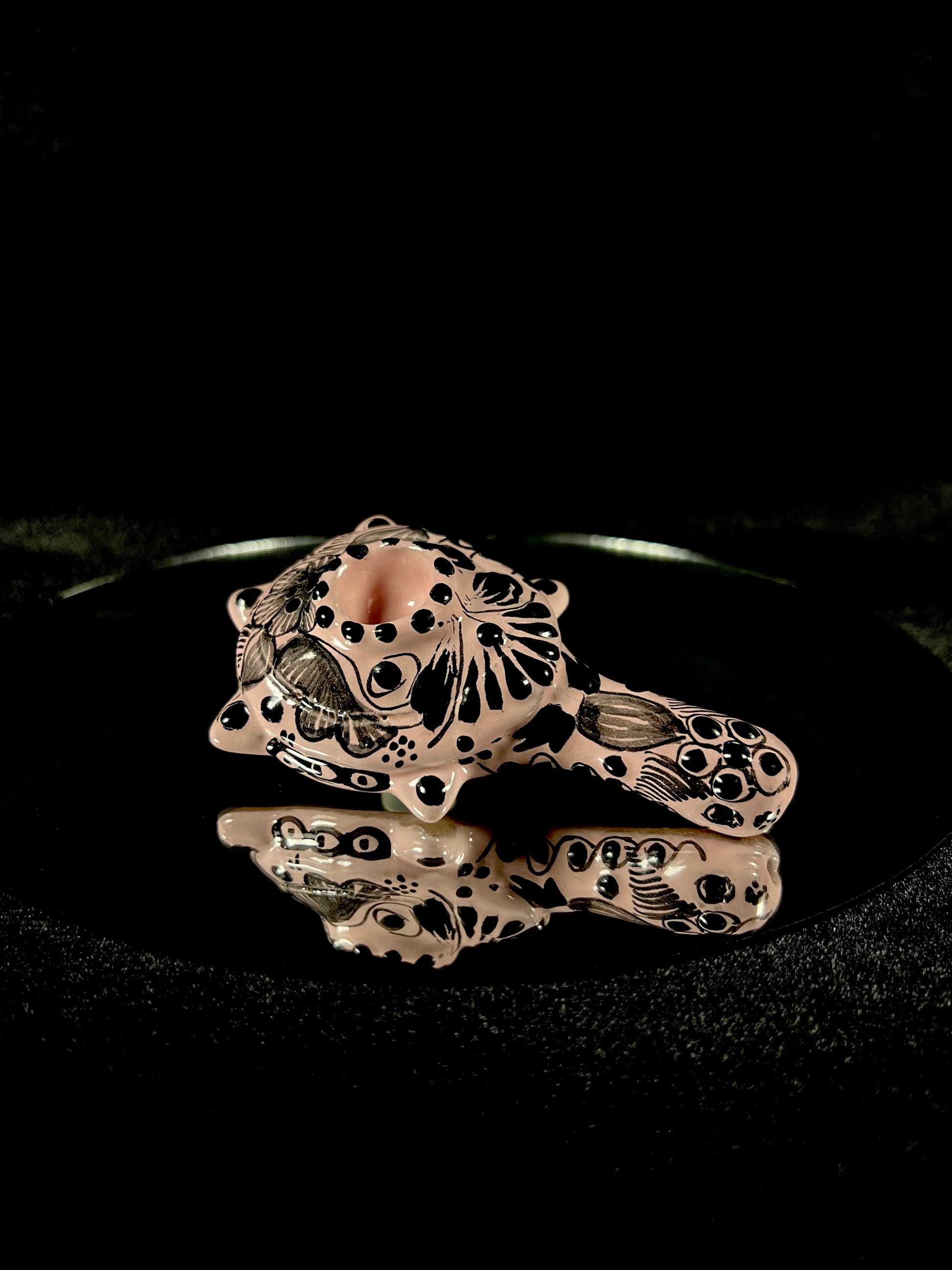 Talavera Hand Pipe: Handcrafted with intricate molds and elegant paintings, these Talavera hand pipes showcase creatures like Aztec dragons, eagles, turtles, and stingrays. Each piece is a unique masterpiece, reflecting the rich tradition of Talavera art.