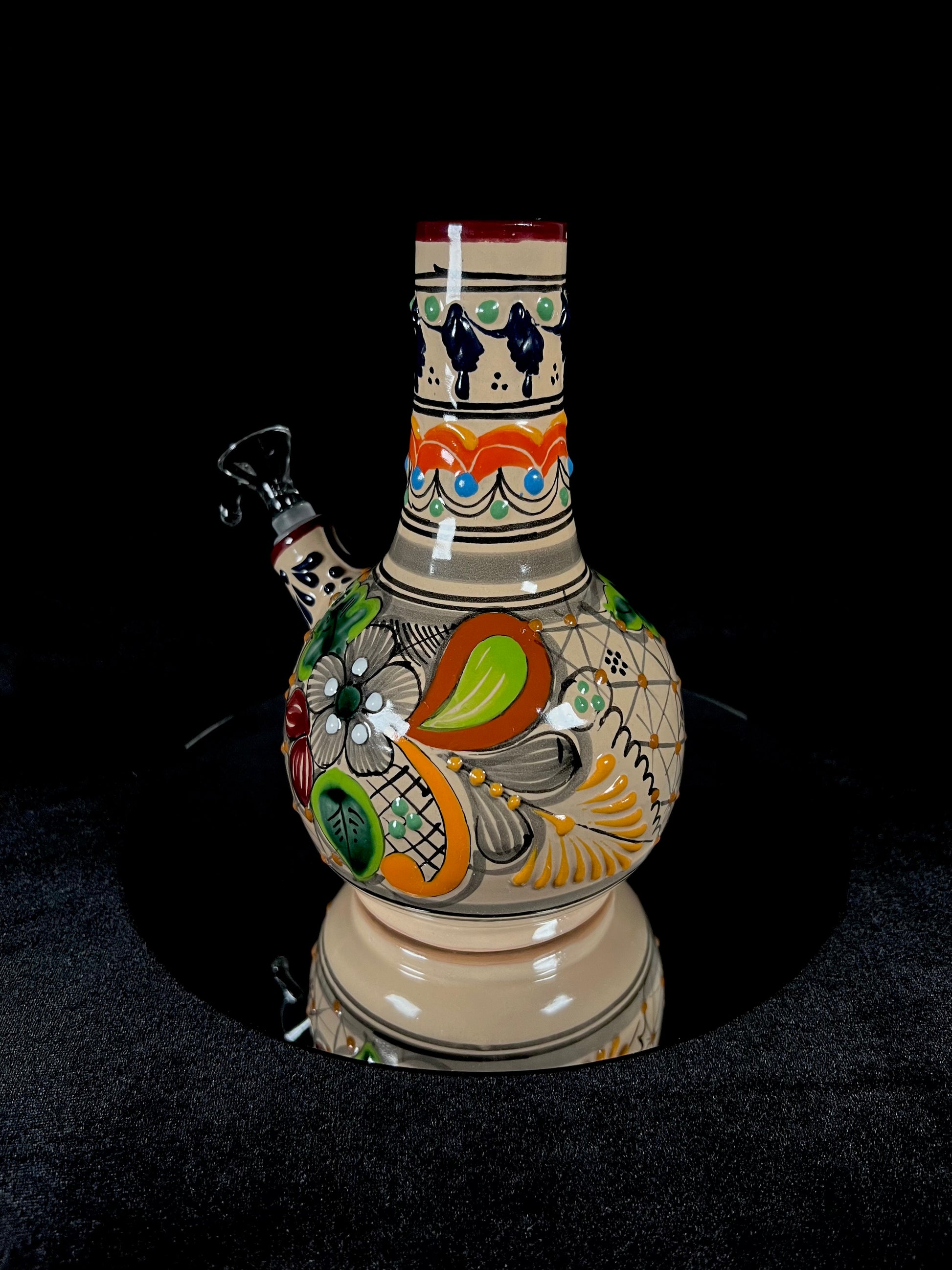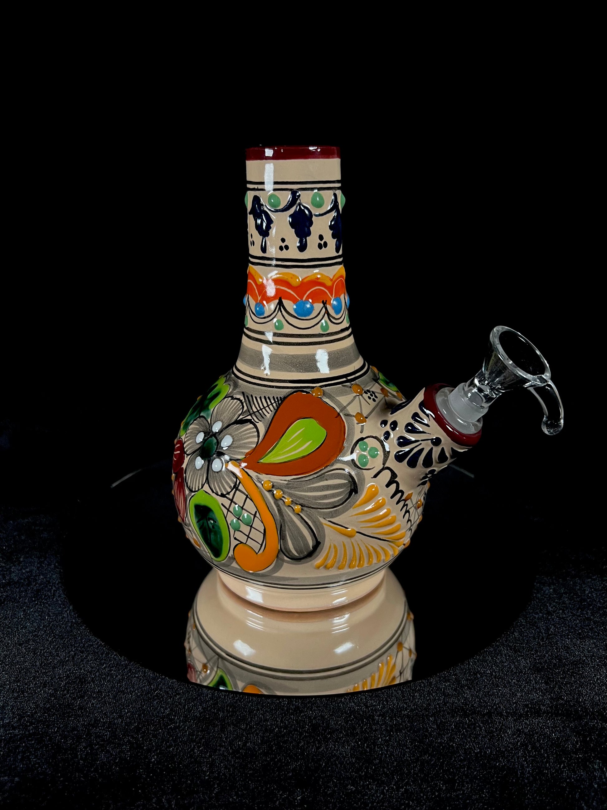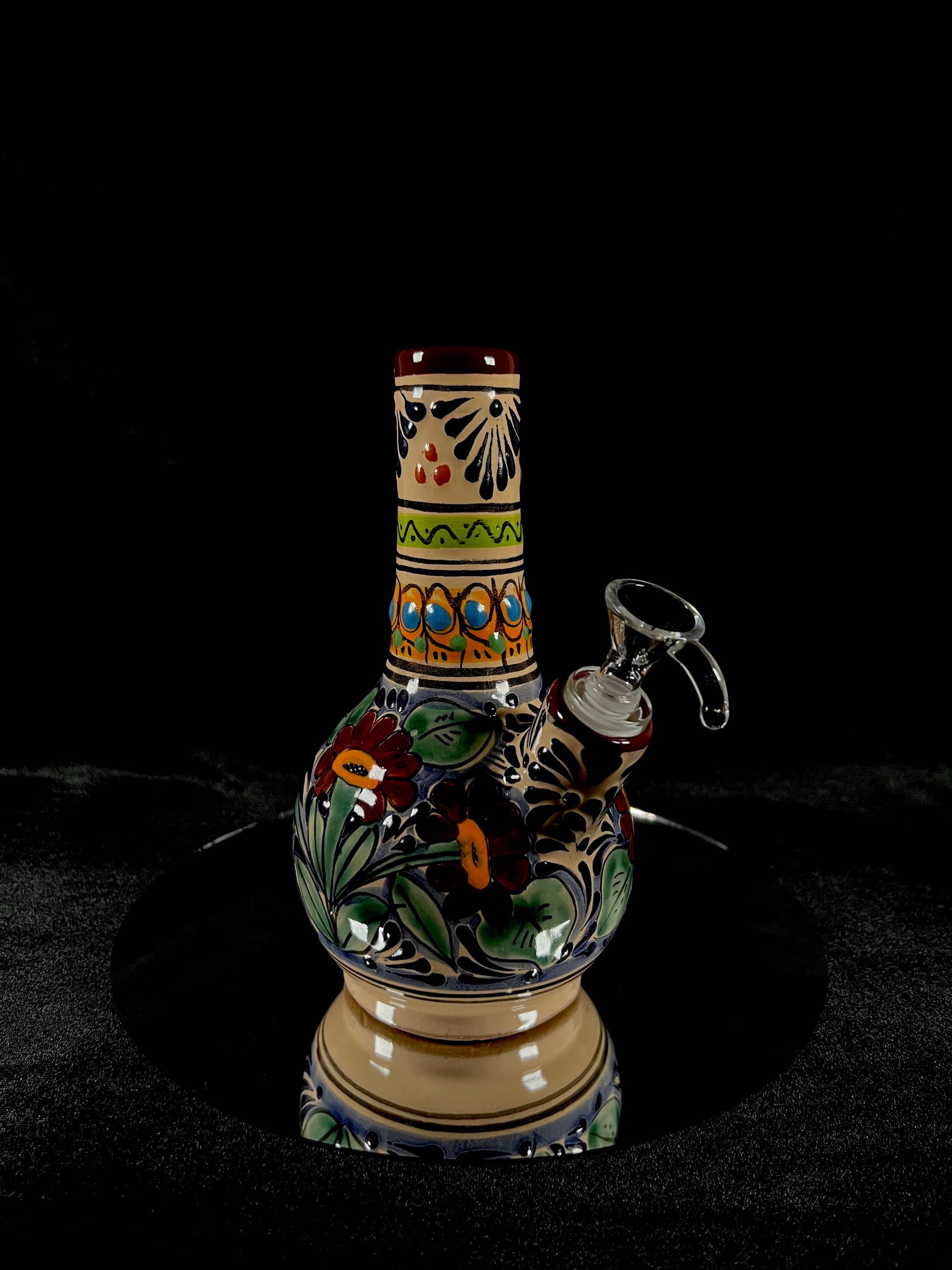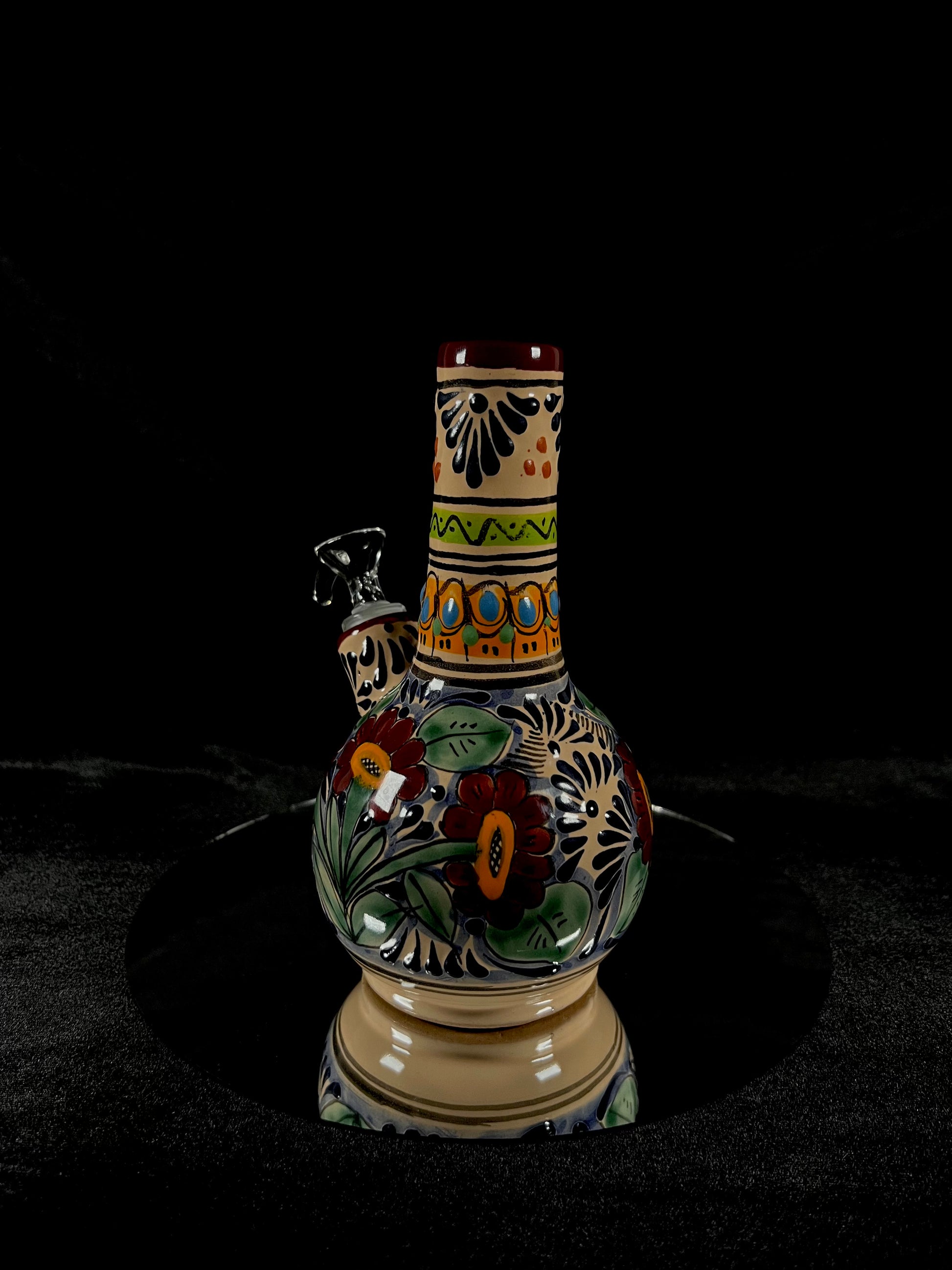 Talavera Water Pipes: Authenticated Talavera water pipes with unique plumeado and floral designs, each piece is hand-spun to perfection. These one-of-a-kind creations reflect the traditional beauty and craftsmanship of Talavera art.